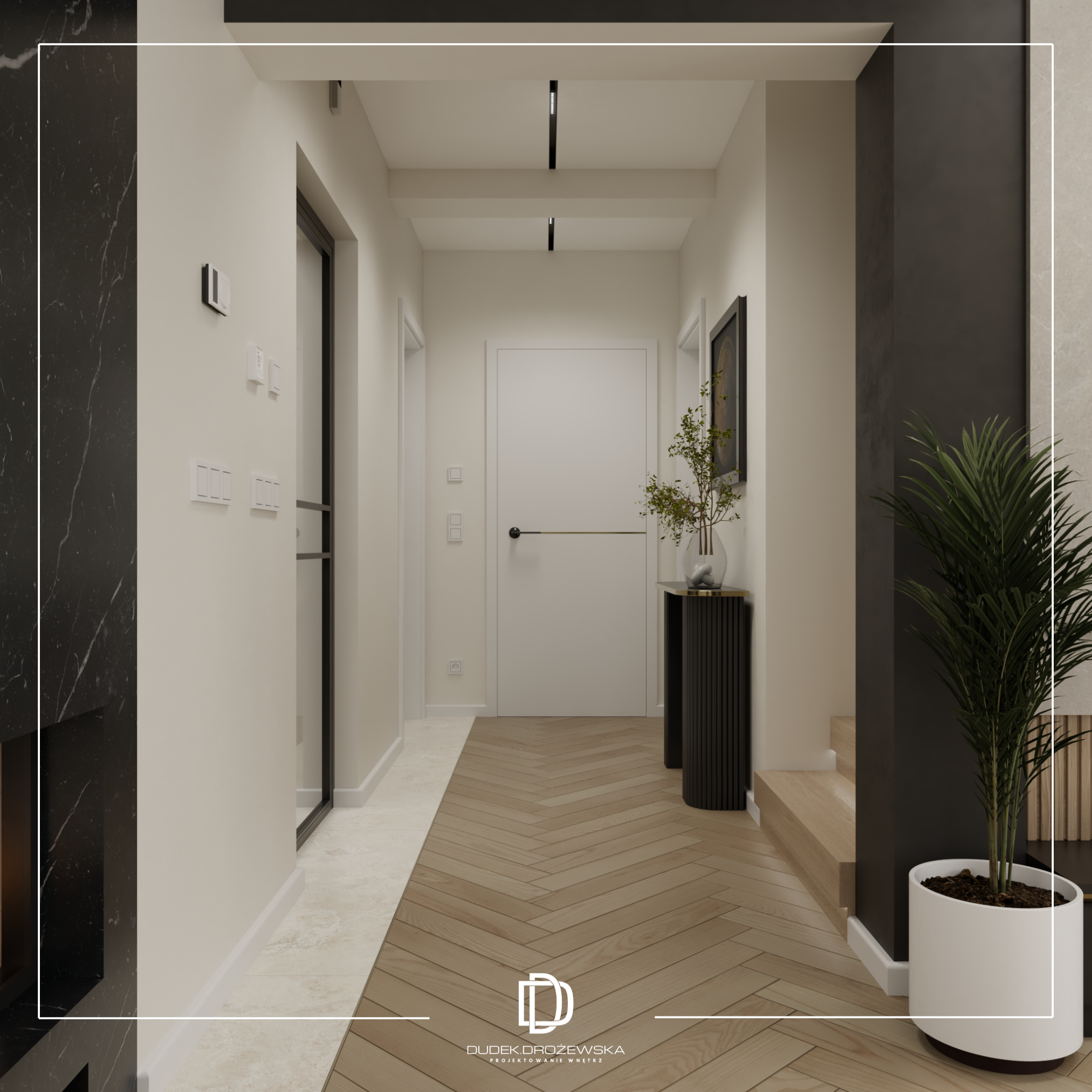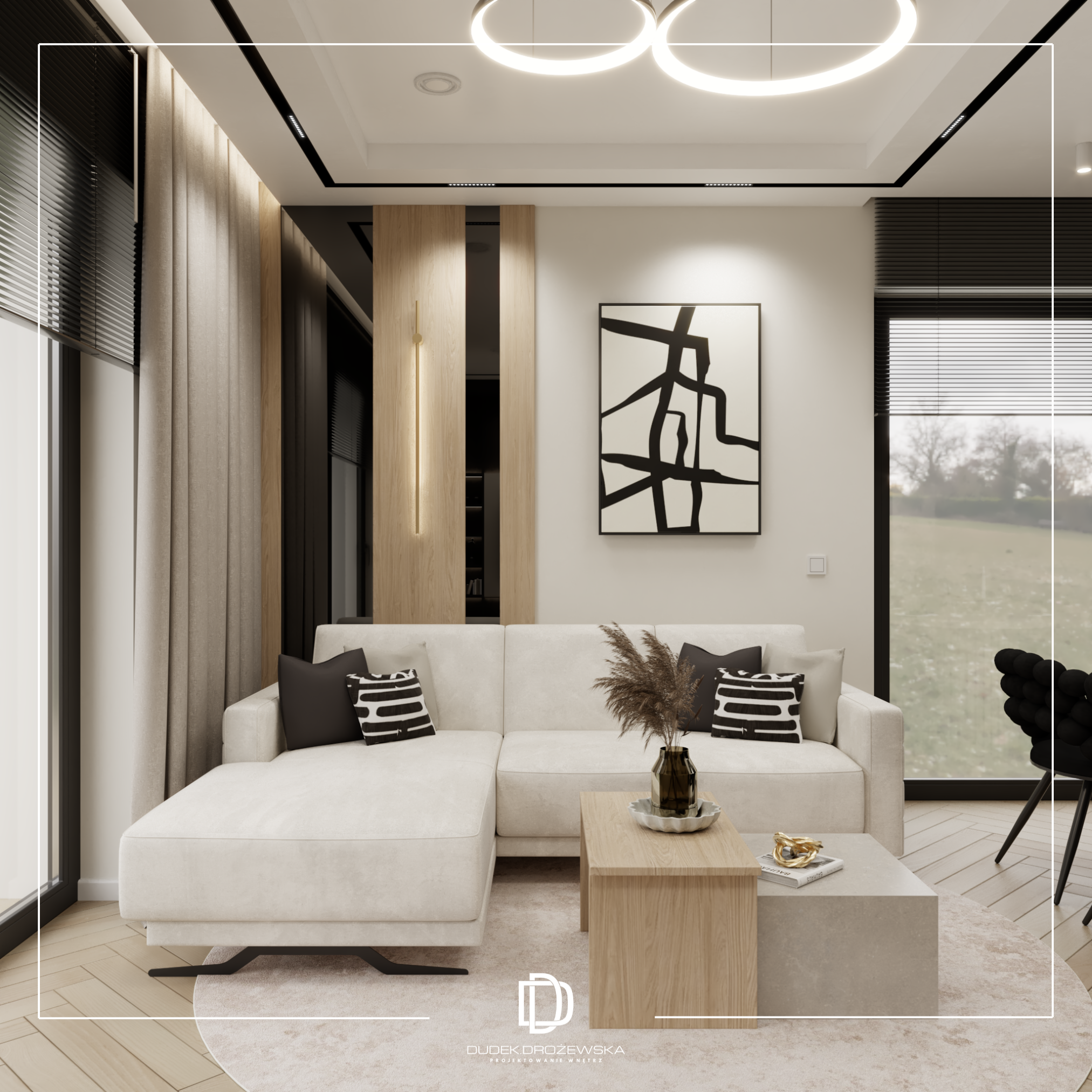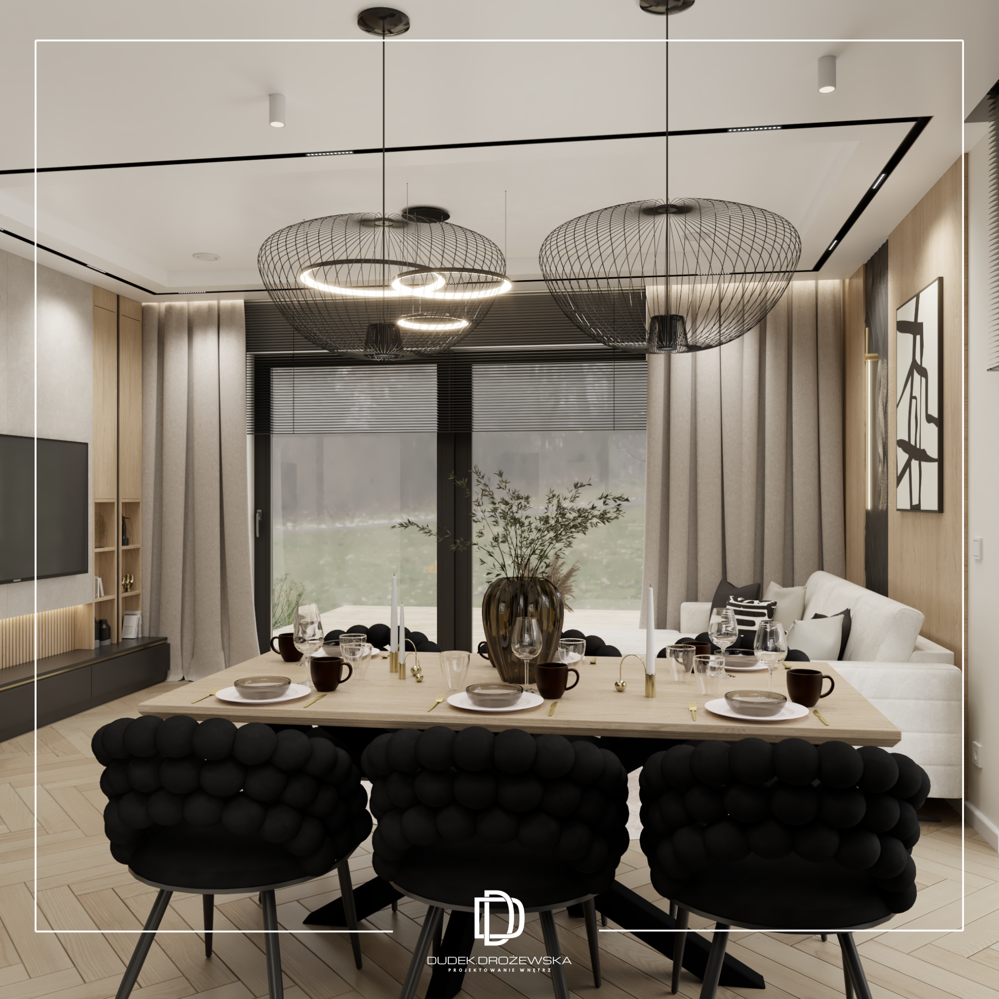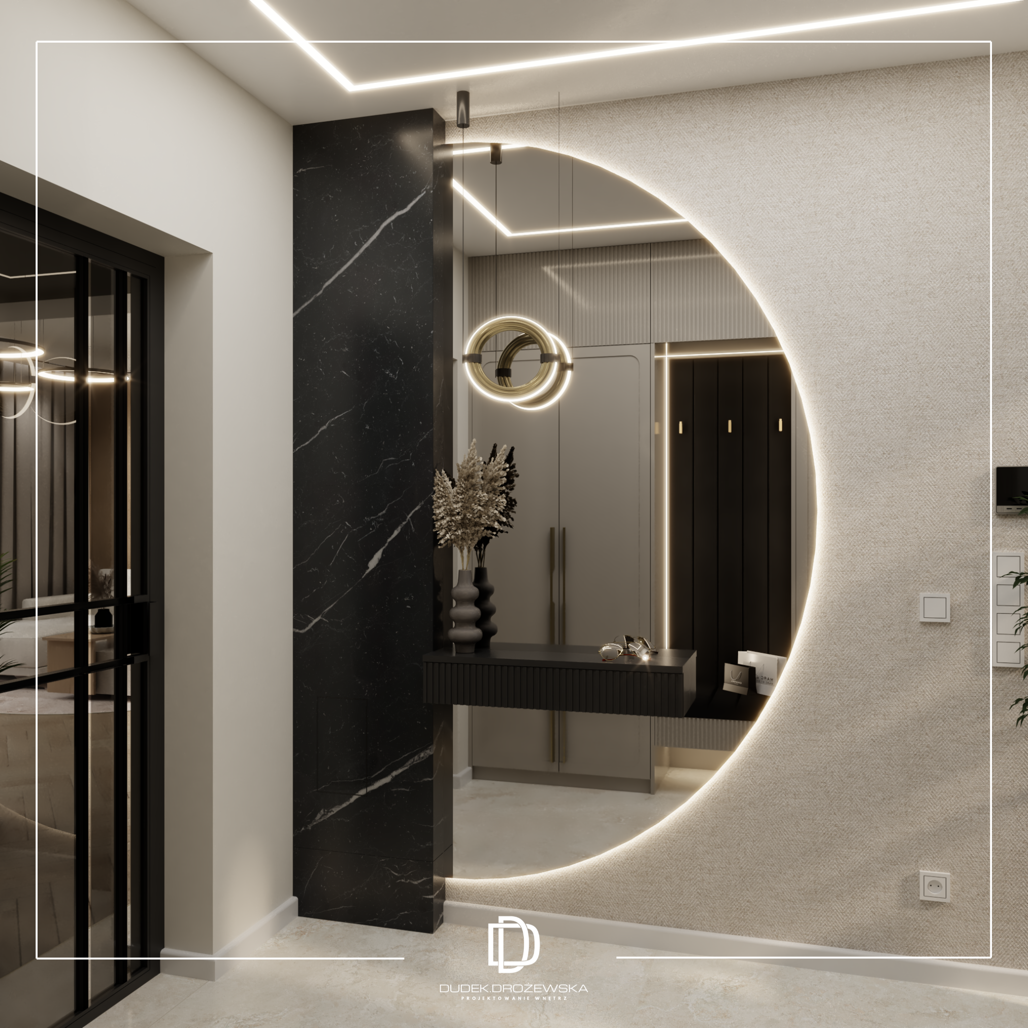 Całość tworzy nowoczesne, eleganckie wnętrze z nutą luksusu, ale bez przesady – takie, w którym po prostu dobrze się żyje na co dzień.