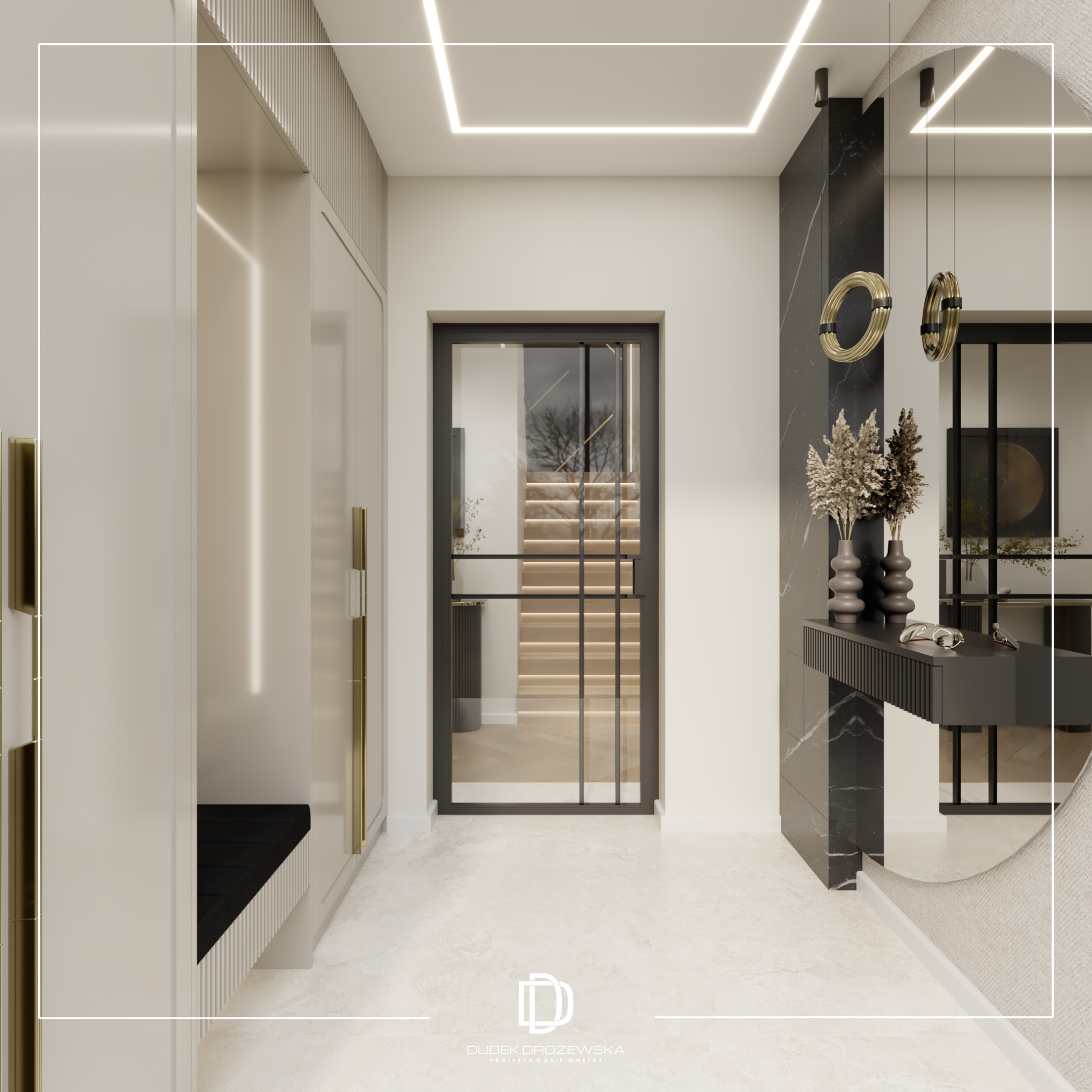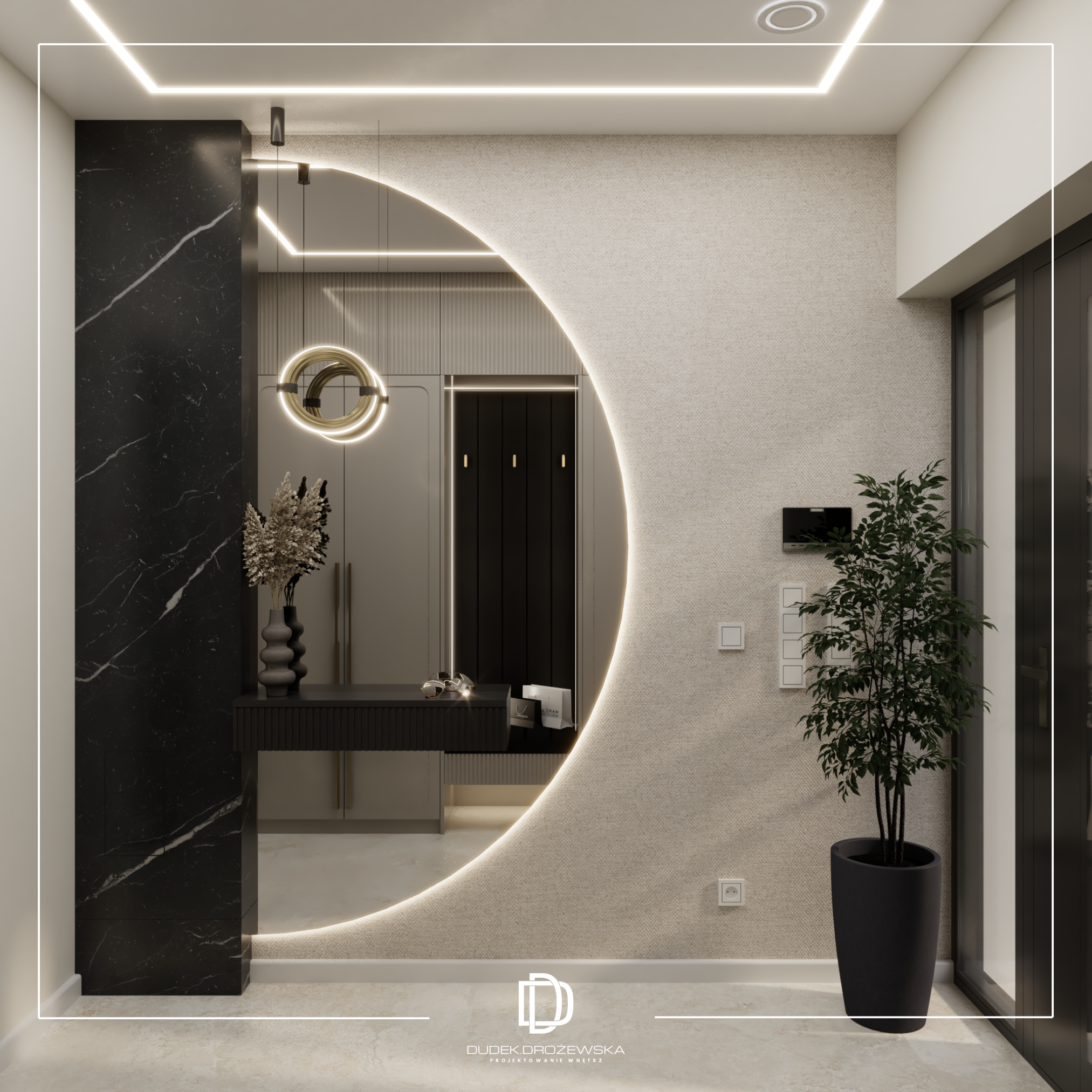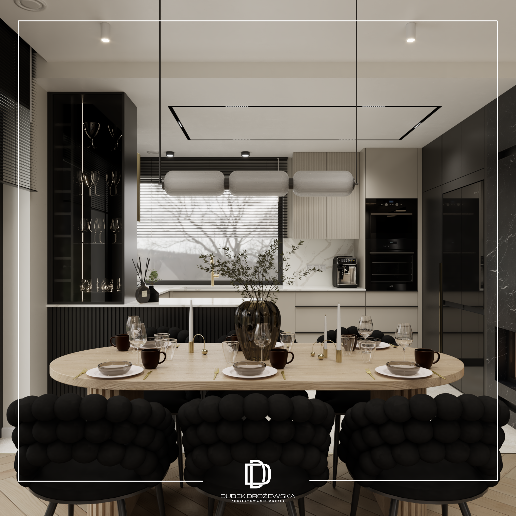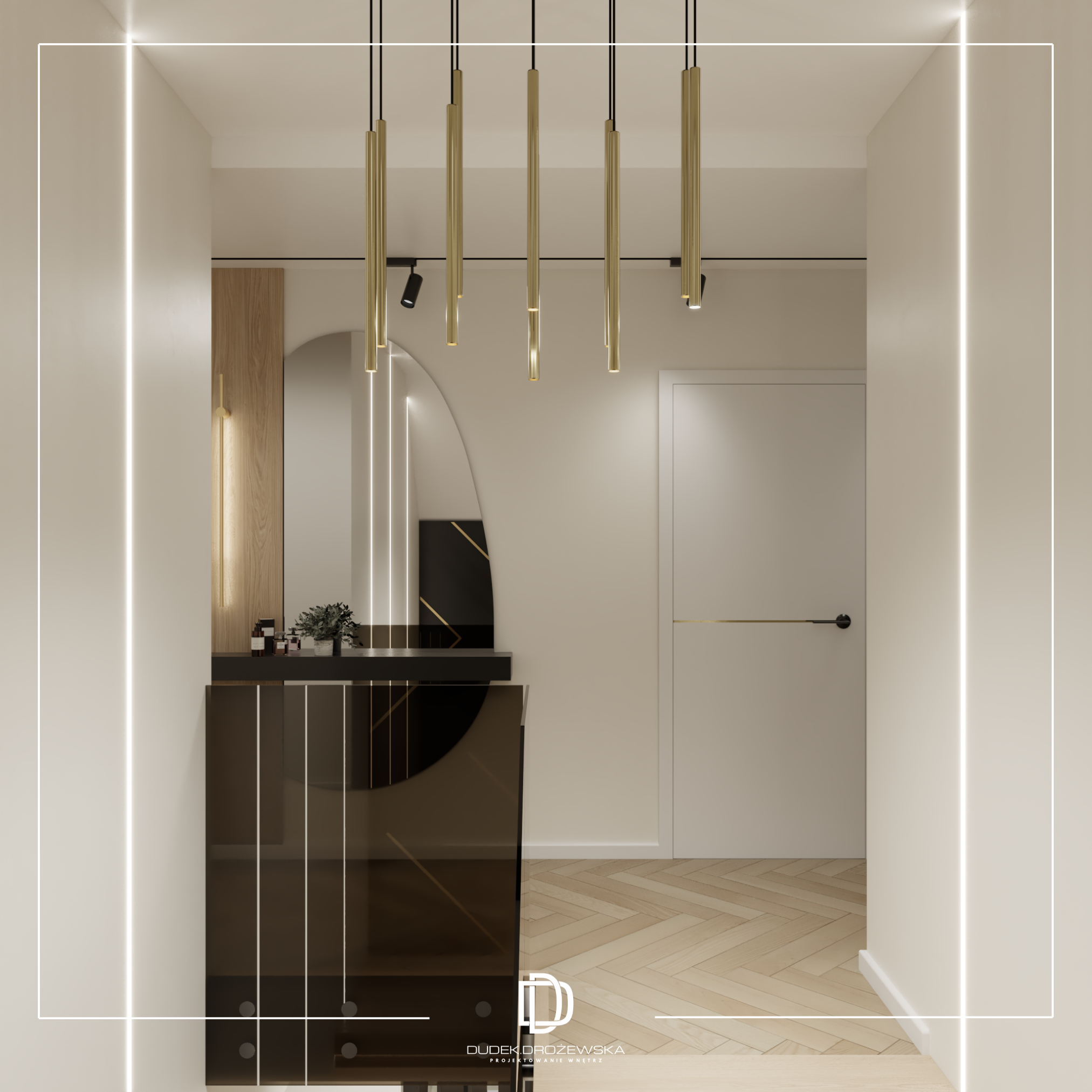 Całość tworzy nowoczesne, eleganckie wnętrze z nutą luksusu, ale bez przesady – takie, w którym po prostu dobrze się żyje na co dzień.